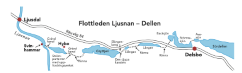 Flottningsleden gick från Svinhammar i Ljusdal till Näsviken i Forsa socken. Den upphörde efter 28 år, när förlängningen av Dellenbanan till Ljusdal stod klar. Placeringen av ångsågen i Hybo (1888) var en av förutsättningarna för att järnvägen skulle förlängas från Näsvikens hamn (1874) till Hybo och Ljusdal, där den anknöt till den år 1880 anlagda Norra stambanan.